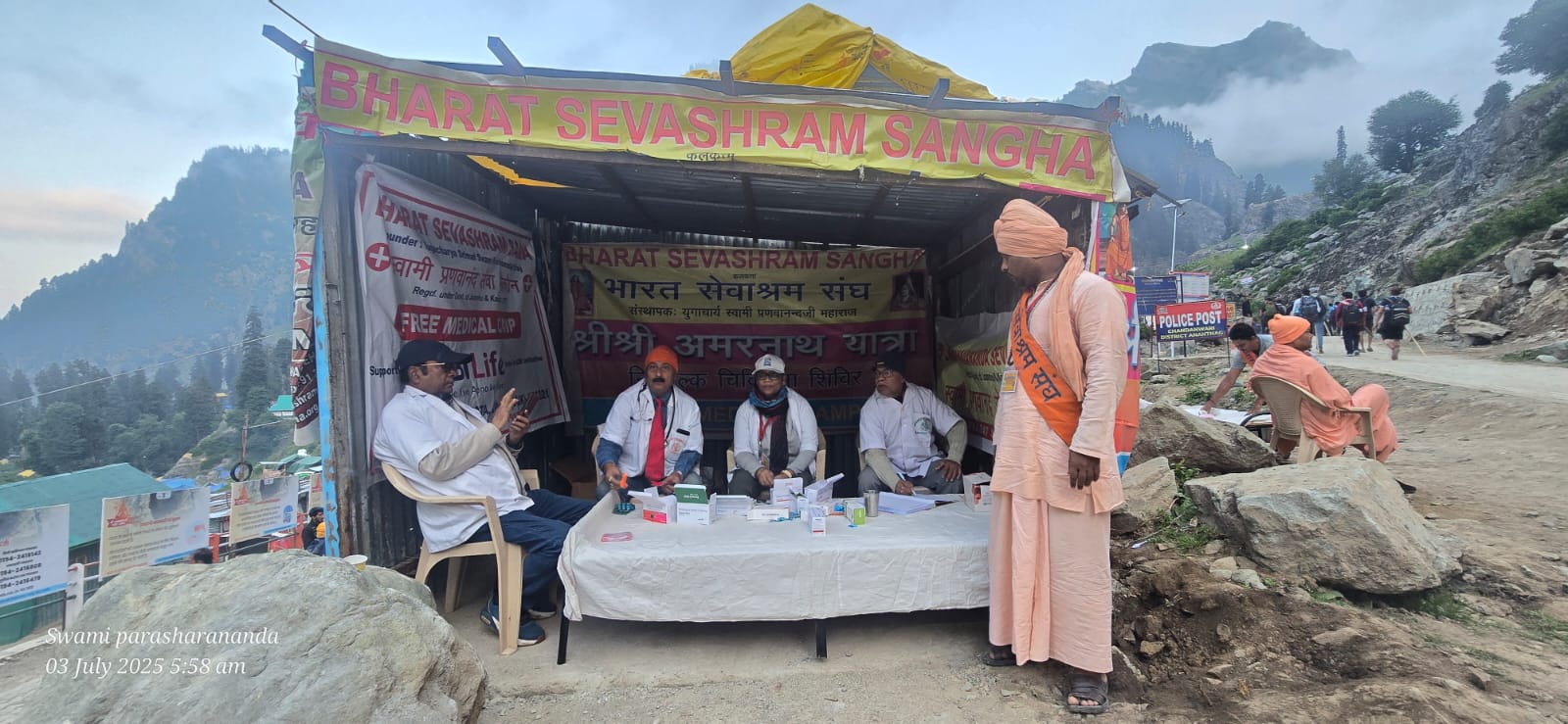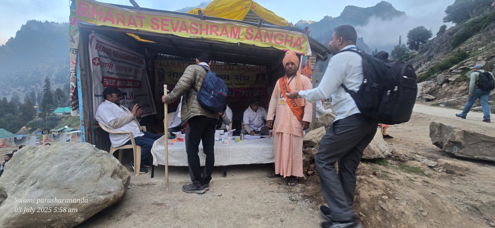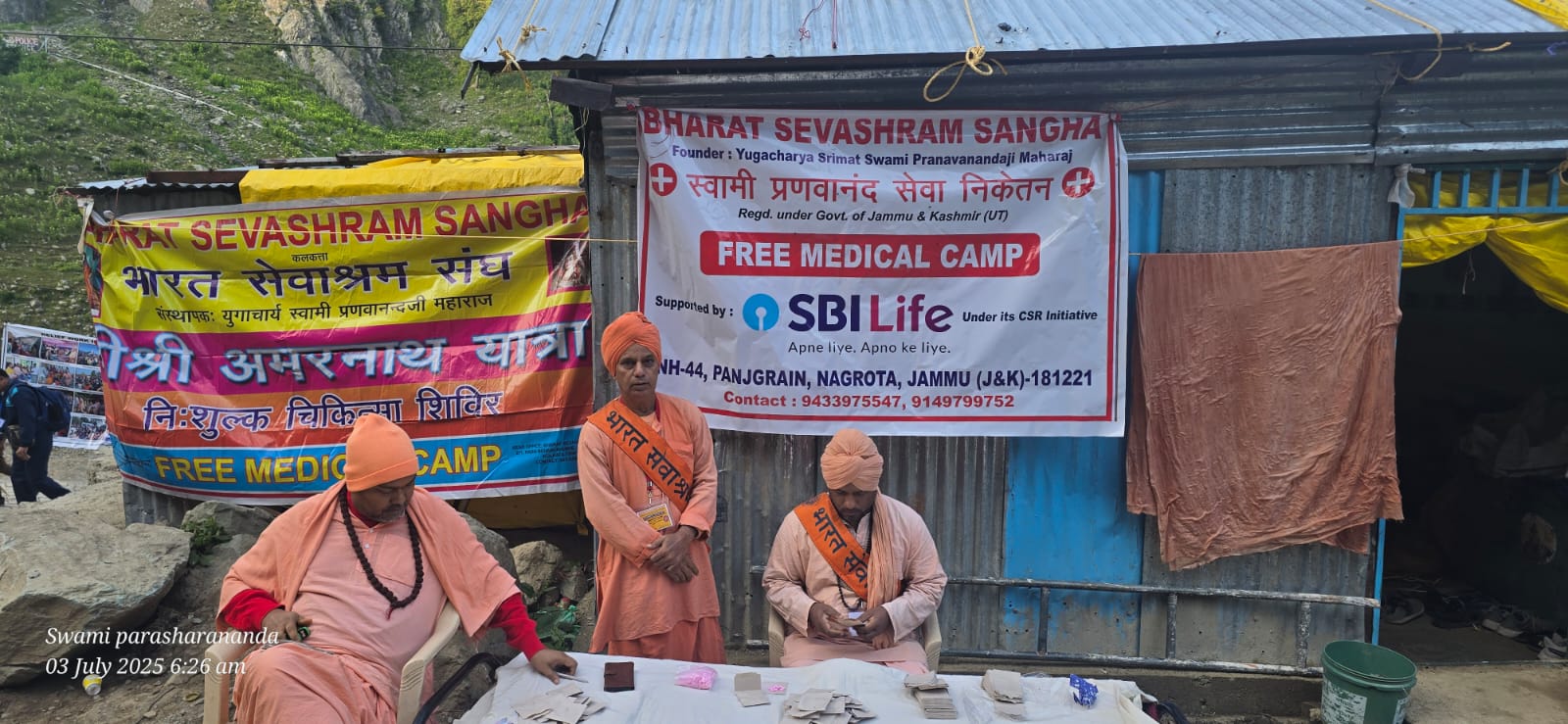 প্রতিবছরের মত এবারেও অমরনাথ তীর্থযাত্রীদের জন্য বিনামূল্যে মেডিকেল পরিষেবা চালু করল ভারত সেবাশ্রম সংঘ। অমরনাথের পথে চন্দনবাড়িতে মেডিকেল ক্যাম্পের মাধ্যমে তীর্থযাত্রীদের বিনামূল্যে ঔষধ দেওয়া হচ্ছে। এছাড়া পাহাড়ে ওঠার আগে তাদের অক্সিজেন লেভেল পরীক্ষা করার ব্যবস্থা করা হয়েছে ওই ক্যাম্পে। ভারত সেবাশ্রম সংঘের জম্মু শাখার প্রধান স্বামী সত্যমিত্রানন্দ মহারাজের নেতৃত্বে এই ক্যাম্প চলছে। এছাড়াও সঙ্ঘের জম্মু কার্যালয়ে তীর্থযাত্রীদের জন্যে ভান্ডরের ব্যবস্থা করা হয়েছে। সেখানে বিনামূল্যে থাকা খাওয়ার সুবিধা রয়েছে। ভারত সেবাশ্রম সংঘের প্রধান সম্পাদক স্বামী বিশ্বাত্মানন্দ মহারাজ জানিয়েছেন, অমরনাথের এই মেডিকেল ক্যাম্প বহু বছর ধরে তারা করে আসছেন। এবারেও কলকাতা সহ সংঘের বিভিন্ন শাখা কেন্দ্রগুলি থেকে সন্ন্যাসী ও স্বেচ্ছাসেবকরা অমরনাথে মেডিকেল পরিষেবা দিচ্ছেন। অমরনাথ যাত্রা যতদিন চলবে অভিজ্ঞ চিকিৎকরা এই পরিষেবা দেবেন।
