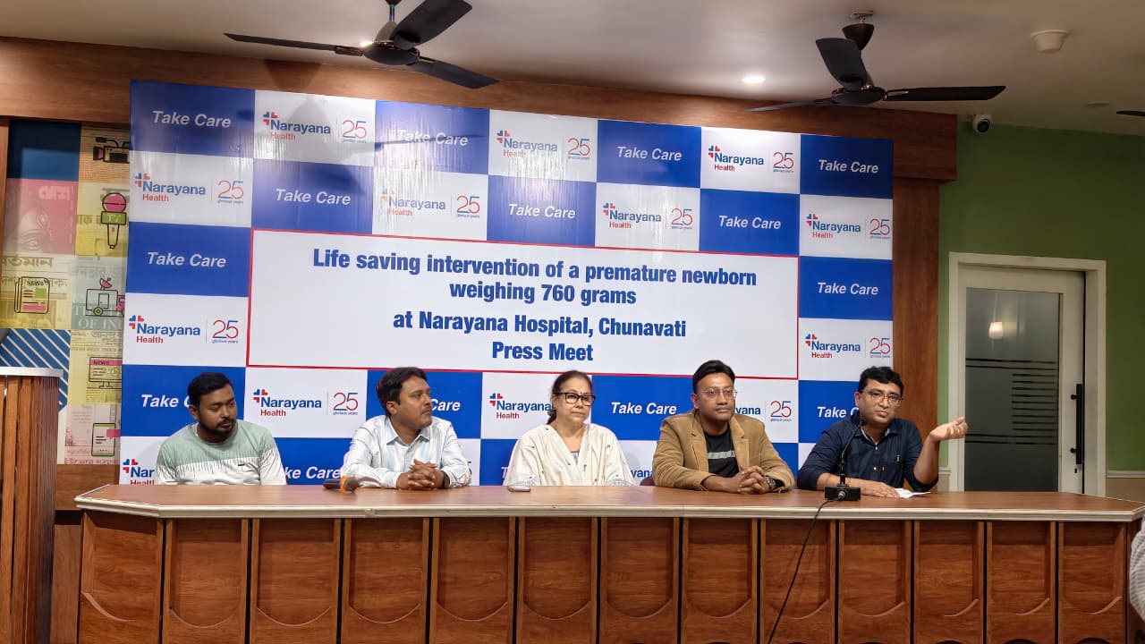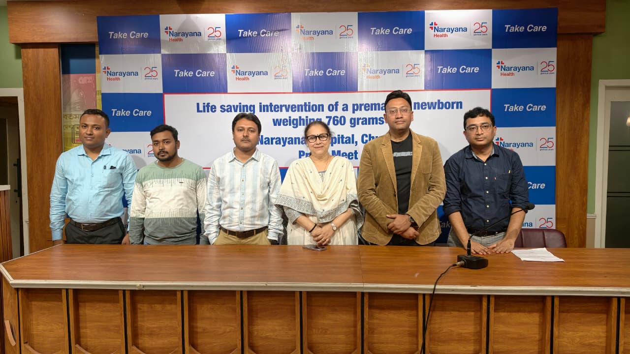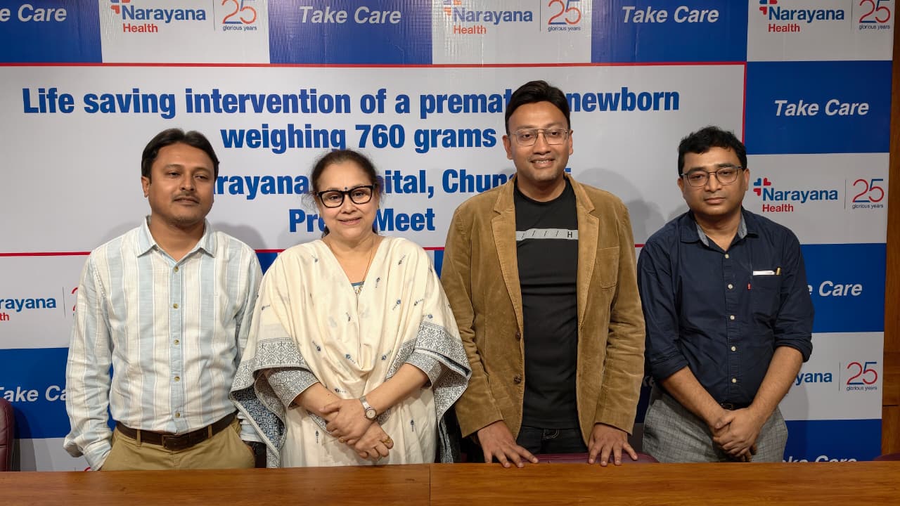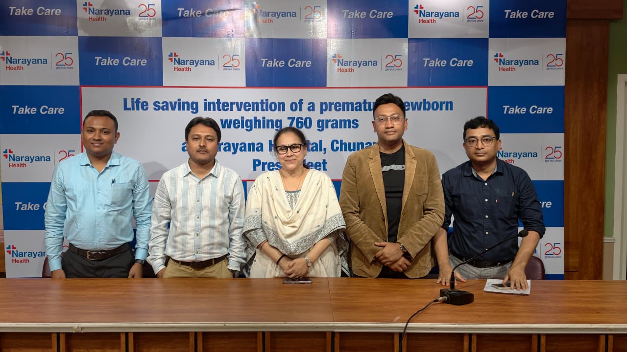 নারায়ণা হাসপাতাল, চুনাভাটিতে জন্ম নেওয়ার পরই নবজাতকটি গুরুতর শ্বাসকষ্টে ভুগতে শুরু করে এবং তাকে তৎক্ষণাৎ ভেন্টিলেশনে রাখতে হয়। এত কম ওজনের নবজাতককে সামলানো ছিল অত্যন্ত চ্যালেঞ্জিং। ডা. অখিলেশ্বর নারায়ণ চৌধুরী, কনসালট্যান্ট – পেডিয়াট্রিক মেডিসিন-এর নেতৃত্বে নিওনেটাল দল শিশুটিকে এনআইসিইউ-তে সার্বক্ষণিক নিবিড় পর্যবেক্ষণে রাখে।