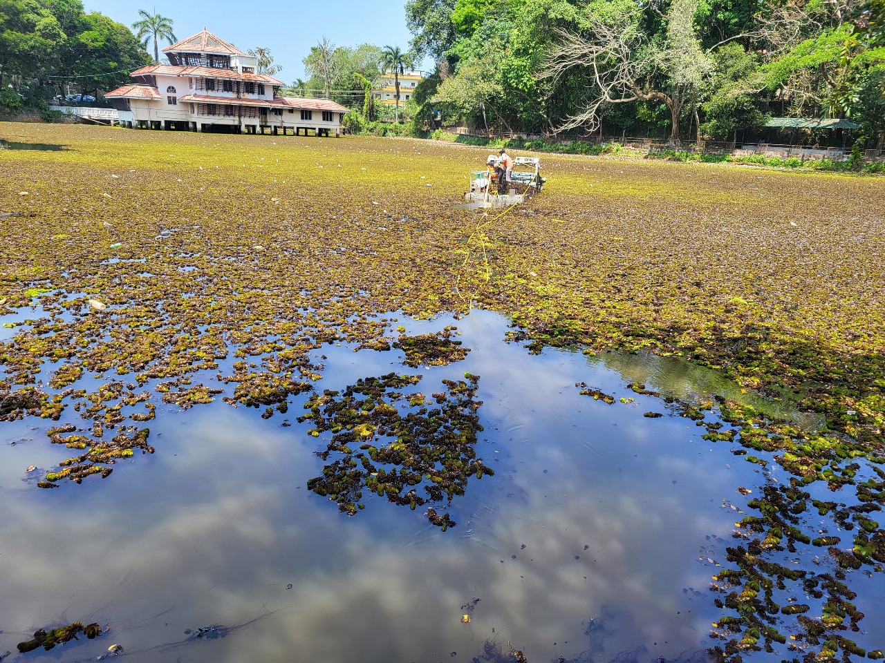 Further south in Adoor, Kerala, under the AMRUT Mission, the Clearbot Alligator cleared 14,164 square meters of lake surface covered with invasive African weeds within 44 days, averaging nearly 500 square meters per day.