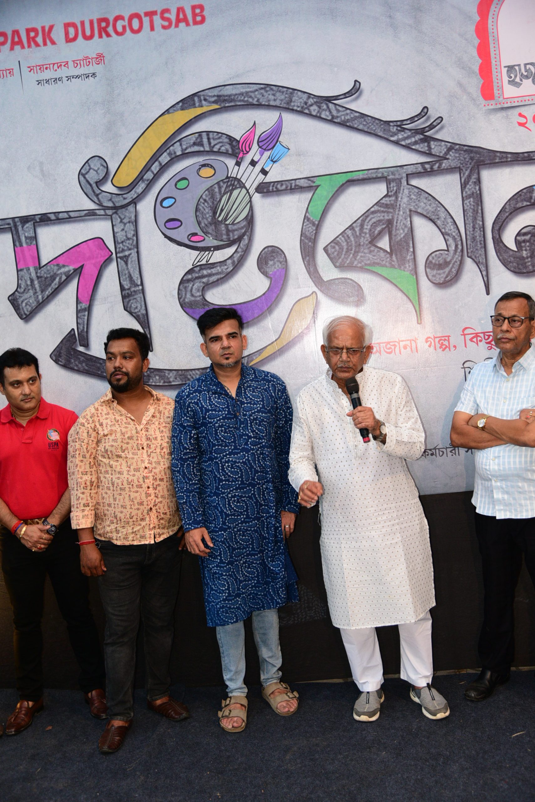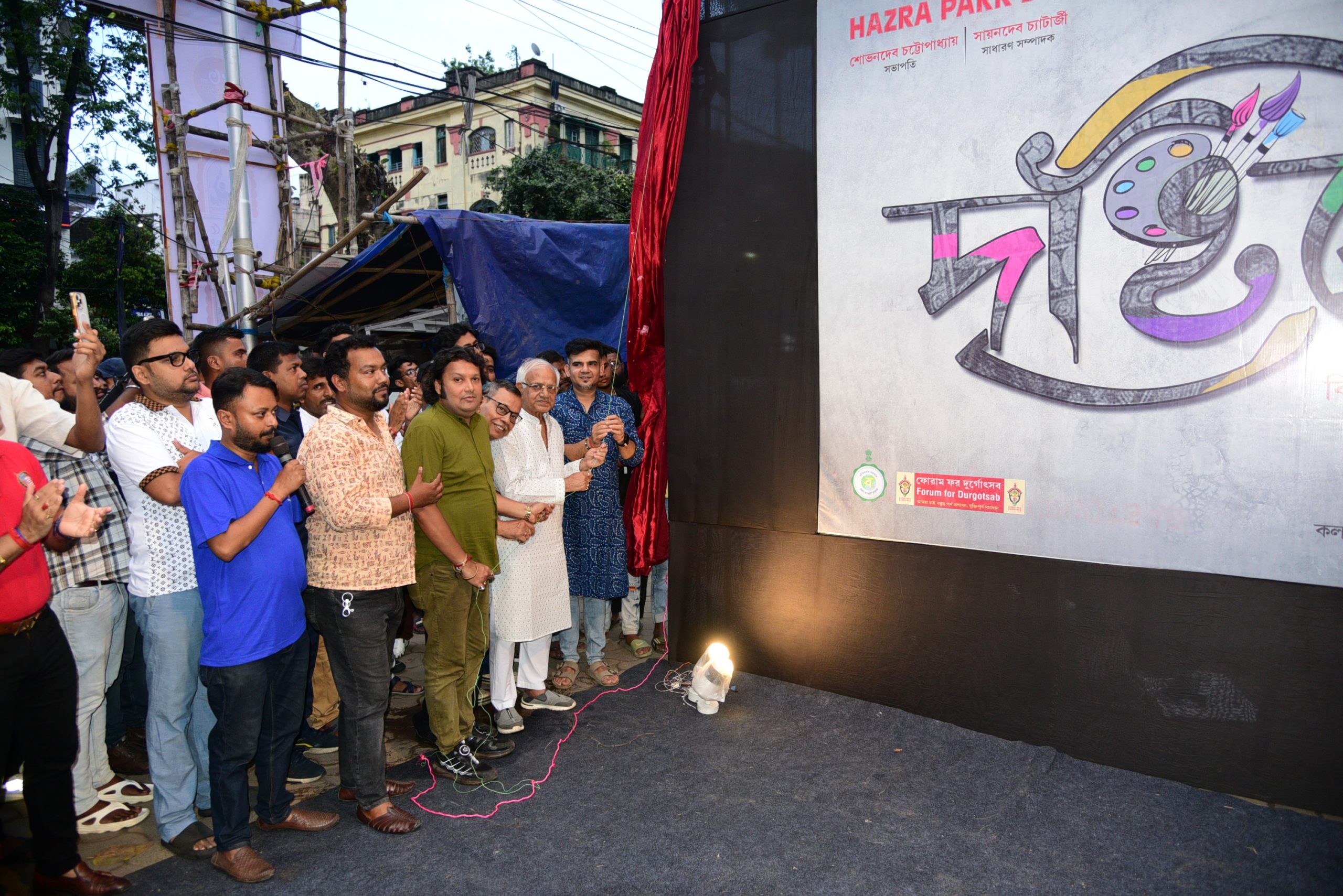 This year, Hazra Park Durgotsab presents its theme – “Drishtikon”. The occasion was glittered by the presence of various eminent personalities like: Sri. Sovandeb Chattopadhyay, Minister of Agriculture, Govt of WB; Sri. Sayan Deb Chatterjee, Joint Secretary of Hazra Park Durgotsab Committee; Sri. Biman Saha, Artist & many others.