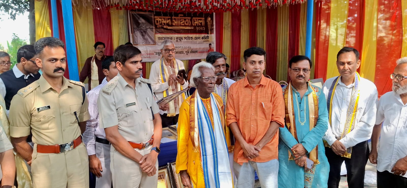 মঙ্গলবার পূর্ব বর্ধমান জেলার মঙ্গলকোট থানার কোগ্রামে পল্লিকবি কুমুদরঞ্জন মল্লিকের জন্মদিন উপলক্ষে কুমুদ সাহিত্য মেলা মহাসমারোহে পালিত হলো। এই সাহিত্য মেলায় অতিথি হিসেবে উপস্থিত ছিলেন কাটোয়া মহকুমা পুলিশ অফিসার কাশীনাথ মিস্ত্রি, মঙ্গলকোট থানার আইসি লাল্টু ঘোষ, শ্রীখণ্ড পঞ্চায়েতের প্রাক্তন প্রধান দীপক মজুমদার প্রমুখ। উচ্চশিক্ষা পর্ষদের সভাপতি অধ্যাপক ডক্টর পার্থ কর্মকার মহাশয় কে এবছর ‘কুমুদ রত্ন’, পদ্মশ্রী প্রাপ্ত লোকসংগীত শিল্পী রতন কাহার মহাশয় কে ‘লোচনদাস রত্ন’, সাংবাদিক প্রণব দেবনাথ কে ‘কাটোয়া মহকুমা রত্ন’, অবর বিদ্যালয় পরিদর্শক সমীর মজুমদার মহাশয় কে ‘উত্তর ২৪ পরগণা জেলা রত্ন’, প্রকৃতিরক্ষী সমরেন্দু চক্রবর্তী মহাশয় কে ‘পরিবেশ রত্ন’, অবসরপ্রাপ্ত সরকারি চিকিৎসক ডক্টর অভয় সামন্ত মহাশয় কে ‘মেমারি রত্ন’, গবেষক সম্রাট কুমার পাল মহাশয় কে ‘ভাতার রত্ন’,সাংবাদিক দ্বারকানাথ দাস মহাশয় কে ‘কালনা মহকুমা রত্ন’,বিশিষ্ট লেখক অলক কুমার দত্ত মহাশয় কে ‘সমীর ভট্টাচার্য রত্ন’ সম্মান জানানো হয়। এছাড়া পশুপ্রেমী টুম্পা রায় কে মমতা মন্ডল স্মৃতি পুরস্কার দেওয়া হয় আয়োজক কমিটির তরফে। মোল্লা শফিকুল ইসলাম, বিশ্ববন্ধু পালের সঞ্চালনায় অনুষ্ঠান পরিচালিত হয়।কুমুদ সাহিত্য মেলা কমিটির সাধারণ সম্পাদক মোল্লা জসিমউদ্দিন জানান -” পল্লি কবির ১৪৩ তম জন্মদিন উপলক্ষে এই কুমুদ সাহিত্য মেলায় সমাজের বিভিন্ন স্তরের ১১ জন গুণীজনদের সংবর্ধনা জানানো হয় “।