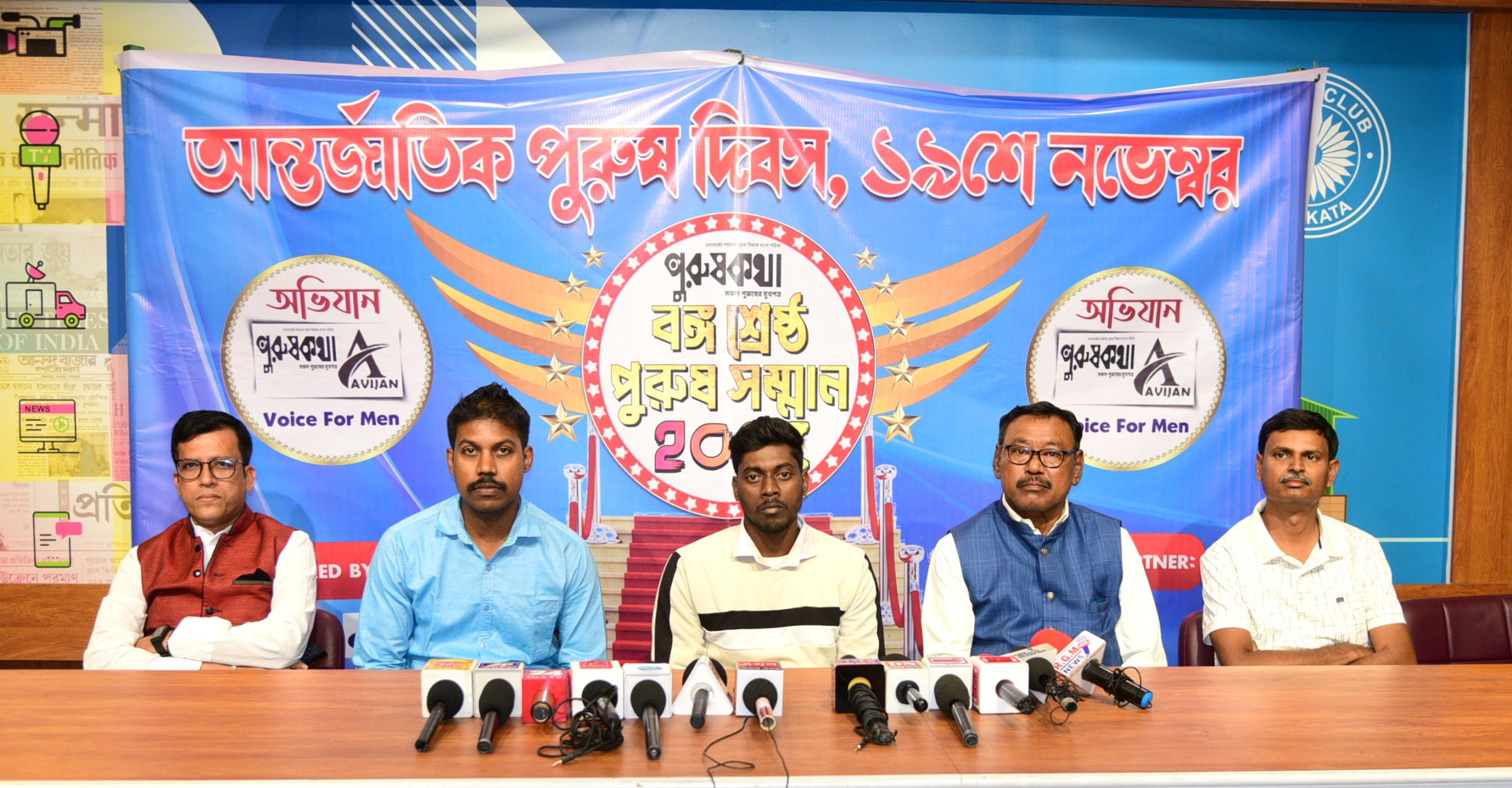 আন্তর্জাতিক পুরুষ দিবস ২০২৫ উপলক্ষে কলকাতা প্রেসক্লাবে (Press Club, Kolkata) অনুষ্ঠিত হয়ে গেল ‘পুরুষ কথা’ আয়োজিত ‘বঙ্গ শ্রেষ্ঠ পুরুষ সম্মান ২০২৫’ (Banga Shrestha Purush Samman 2025) অনুষ্ঠান। উদ্যোক্তা ও আমন্ত্রিত অতিথিরা এই মঞ্চ থেকে সমাজে পুরুষদের ইতিবাচক ভূমিকা এবং লিঙ্গ সমতার বার্তা তুলে ধরেছেন।