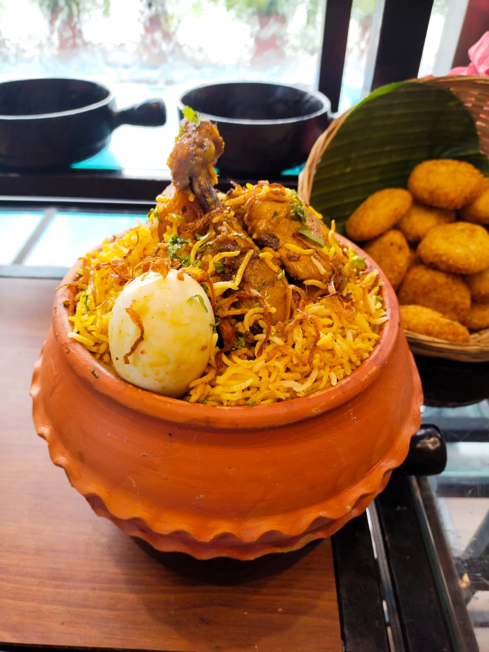 The feast begins with irresistible starters and street-style delights like *Fish Chop, Dimer Devil, Double Egg Roll, and Chingrir Piyaji, setting the stage for a hearty Pujo indulgence. The main spread celebrates Kolkata’s rich palate with dishes such as **Kolkata Dum Chicken Biryani, Kalo Bhuna Mutton, Kacha Lonka Bata Sorshe Pabda, Bhapa Doi Posto-o-Chingri Korma, Kosha Aloo Dum, Chanar Kofta Dalna, and Doi Begun, complemented by popular Indo-Chinese creations like **Wok Tossed Chilli Chicken, Chicken and Double Egg Onion Soft Hakka Noodles, and Ginger Capsicum Fried Rice*.