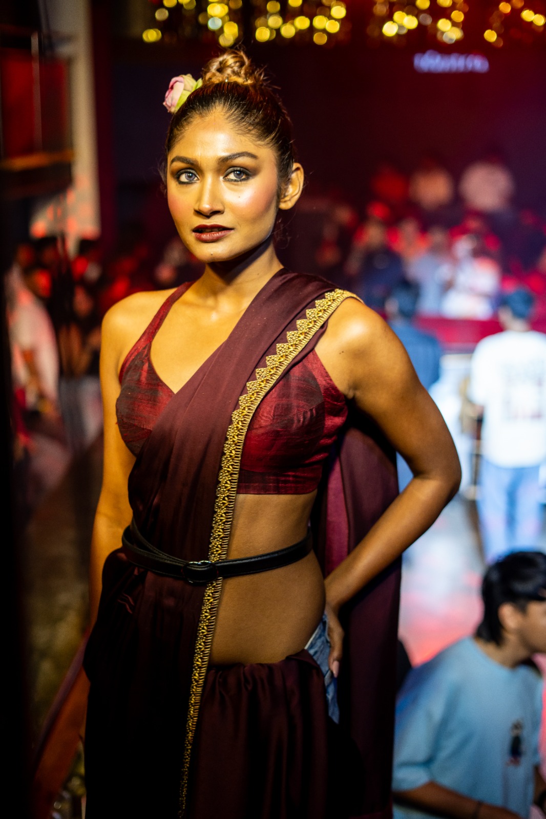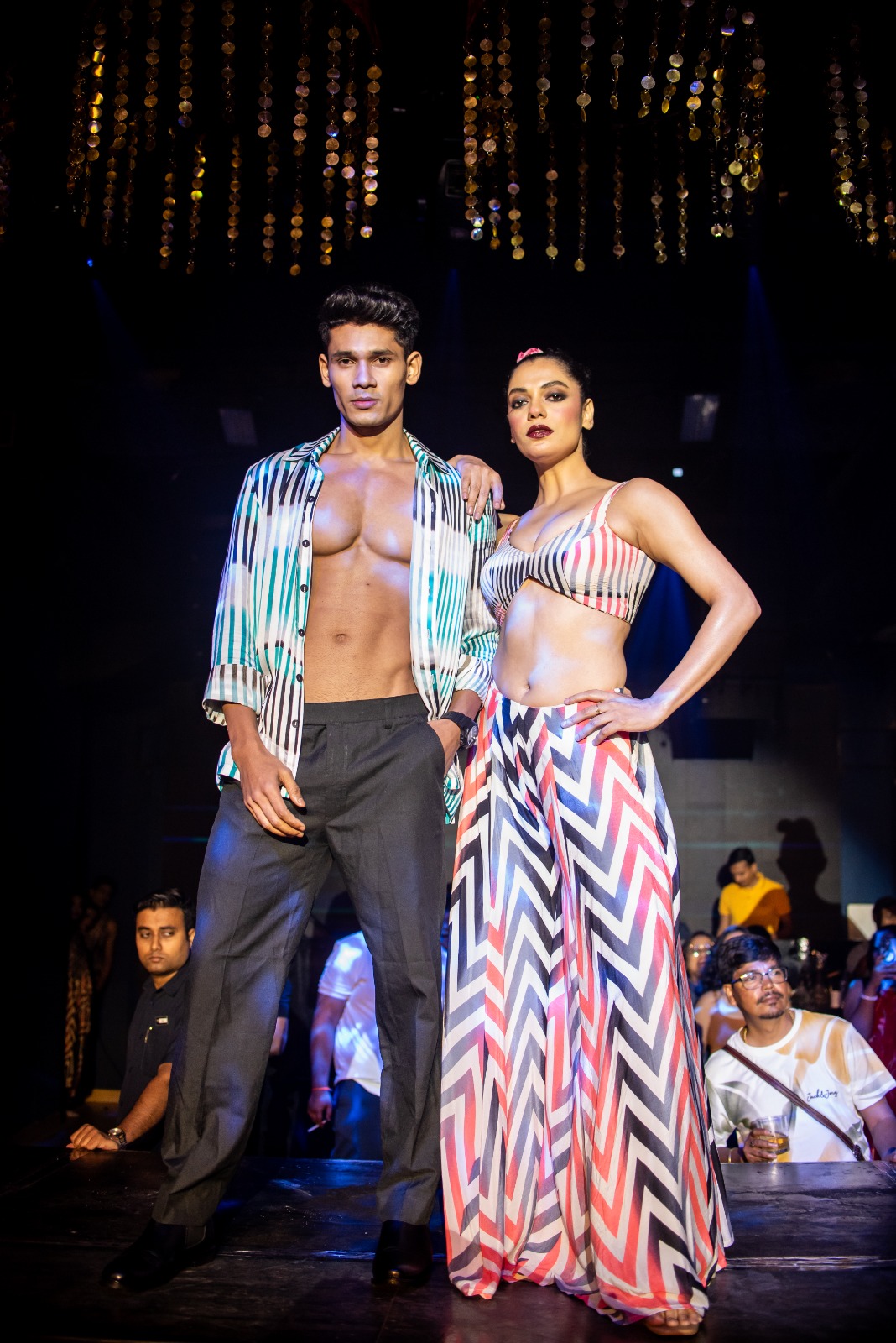 The evening featured an exclusive showcase by designer Debarun, whose collection seamlessly blended Bengali heritage with modern, edgy silhouettes, creating a visually captivating narrative on the runway. The designs reflected a perfect balance of tradition and sensuality, resonating strongly with the audience.