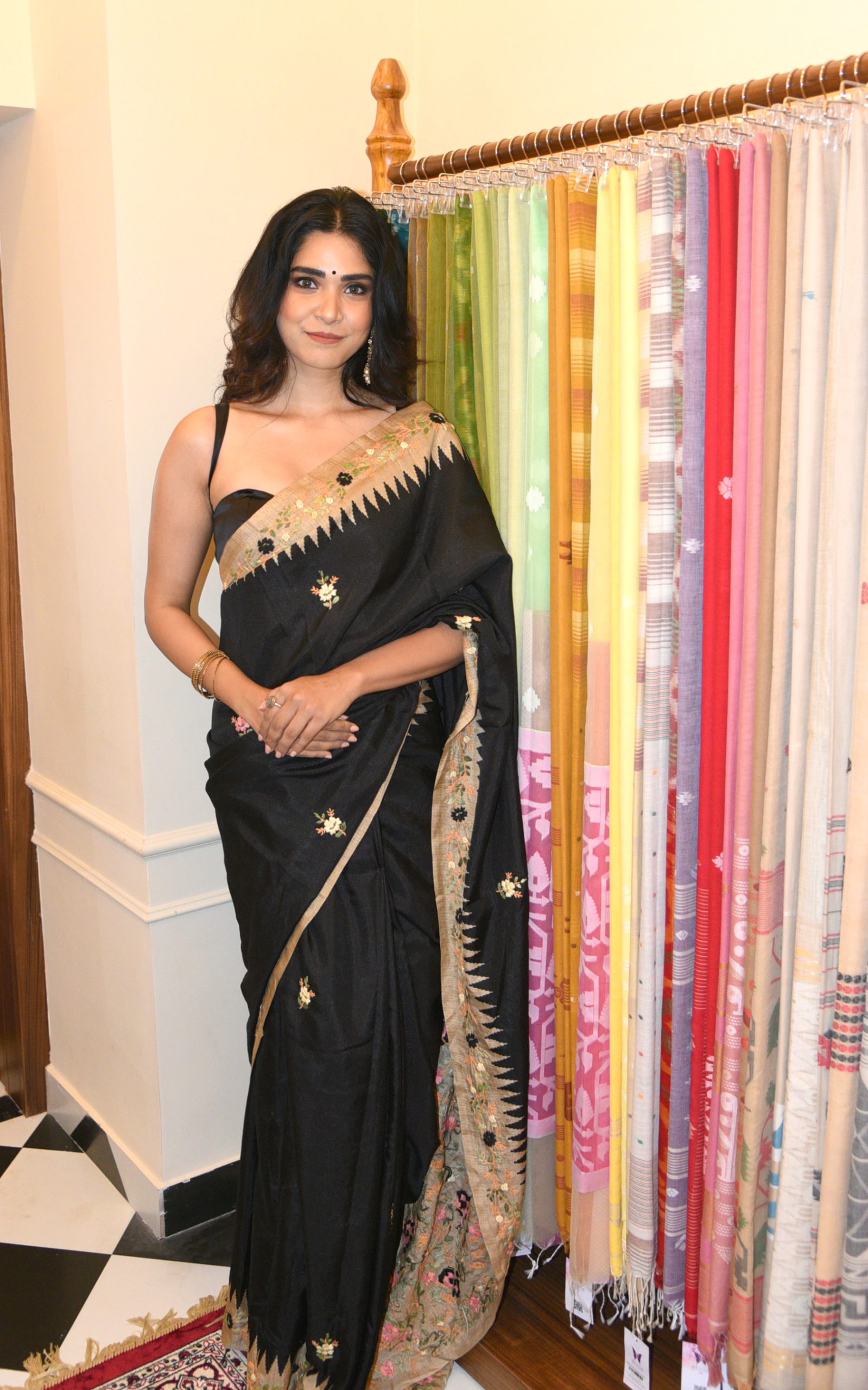 WEVOW’s collections are a tribute to artisanal excellence, featuring fabrics like raw silk, organza, Chikankari, Kalamkari cotton, Jamdani, velvet, and more. Their signature zardozi blouses with backless or front-open silhouettes remain showstoppers, while their saree range — from featherlight organza drapes to intricate French knot Tussar and heritage Jamdani — continues to evoke elegance and individuality.